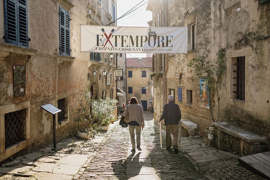 Das Ex Tempore Grožnjan, seit 1994 das bedeutendste kulturelle Ereignis der italienischen Minderheit in Kroatien und Slowenien, verwandelt die istrische Künstlerstadt jedes Jahr in der letzten Septemberwoche in eine große Freiluftgalerie. Künstlerinnen und Künstler aus vielen Nationen präsentieren ihre Werke nicht hinter Atelierwänden, sondern mitten im Stadtraum.