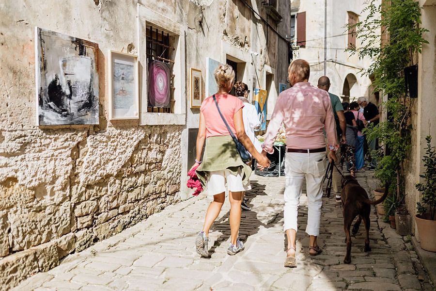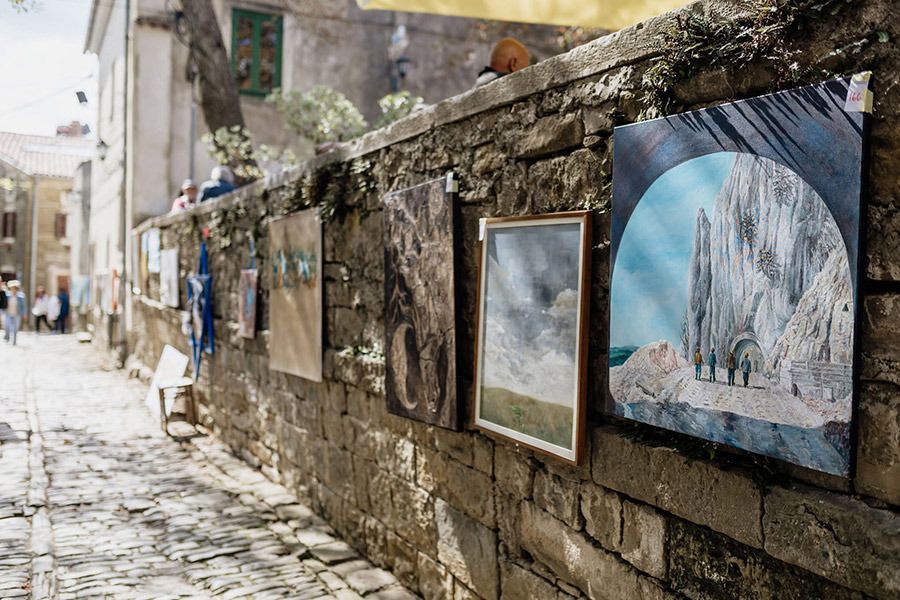 Das Ex Tempore Grožnjan, seit 1994 das bedeutendste kulturelle Ereignis der italienischen Minderheit in Kroatien und Slowenien, verwandelt die istrische Künstlerstadt jedes Jahr in der letzten Septemberwoche in eine große Freiluftgalerie.